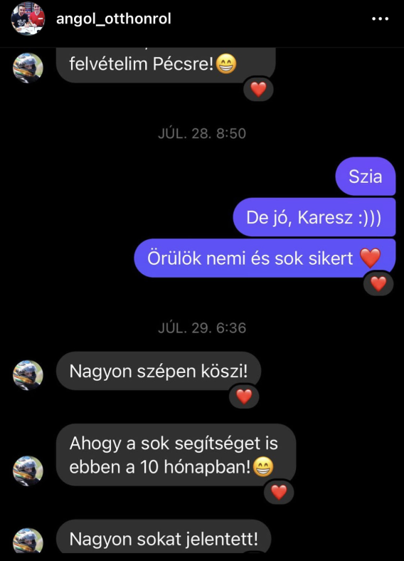 Bármikor elérhető vagyok, ha kérdésed lenne :)